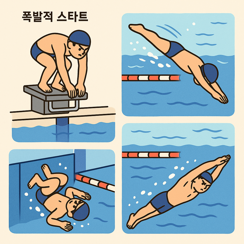 - 스타트는 “빠름”보다 “정확한 각도”가 더 중요