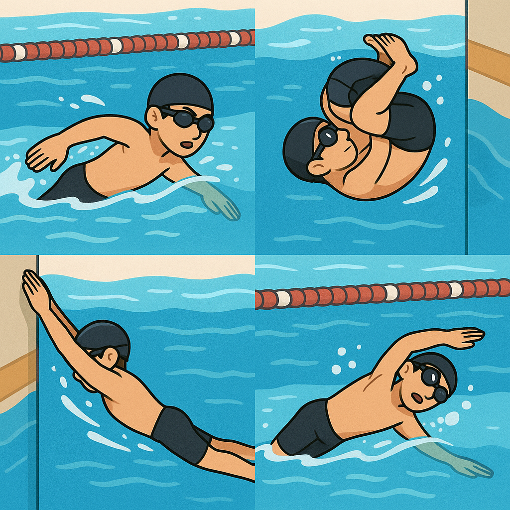→ 실제 경기 루틴처럼 “턴 후 템포 회복” 훈련 - 100m × 4세트 (턴 후 첫 스트로크 일정 유지)